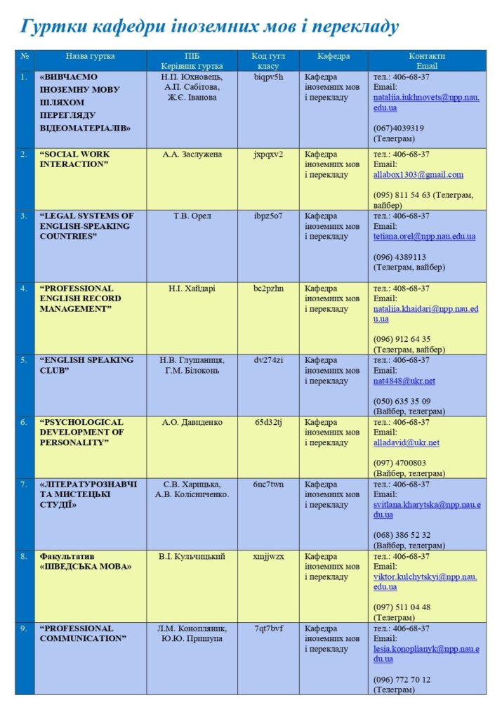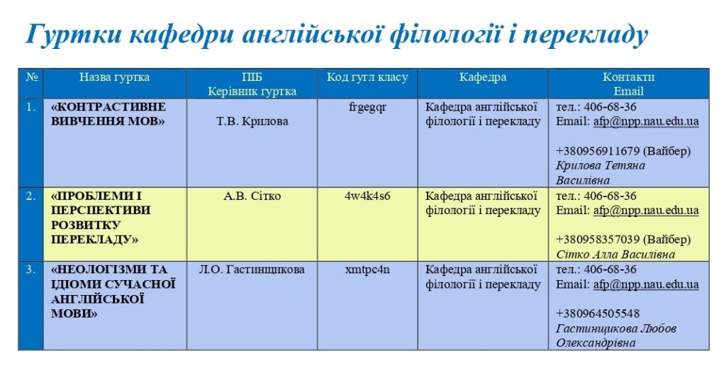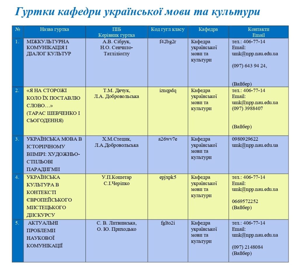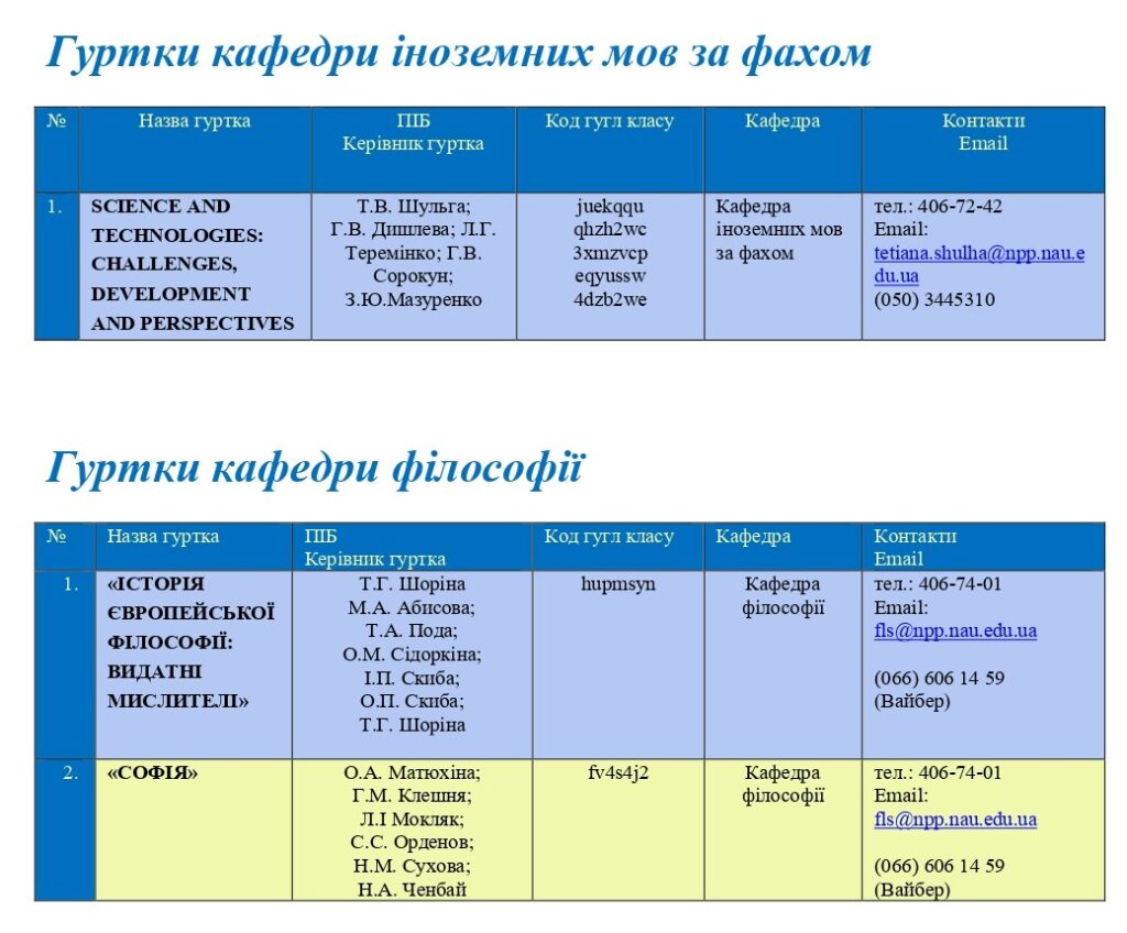 Наукові гуртки НАУКОВІ ГУРТКИ План роботи гуртка Контрастивне вивчення мовПлан роботи гуртка Неологізми та ідіоми сучасної англійської мовиПлан роботи гуртка Проблеми та перспективи розвитку перекладуПлан роботи гуртка EnglSpeakClub гурток _План роботи гуртка Актуальні проблеми наукової комунікаціїПлан роботи гуртка Українська культура в контексті європейського мистецького дискурсуПлан роботи гуртка Міжкультурна комунікація і діалог культурПлан роботи гуртка Українська мова в історичному виміріПлан роботи гуртка PsycholDevevopPersonПлан роботи гуртка SocialworkПлан роботи гуртка Іноземна мова відеоматеріалиПлан роботи гуртка Шведська моваПлан роботи гуртка LegalSystEhgl-SpeakCountrПлан роботи студ наук гуртка_Основи візуальної аналітики та соціології візуального символізмуПлан роботи студ наук гуртка_ПолітіяПлан роботи студ наук гуртка_Соціологічний вимірПлан роботи студ наук-практ груток_Арт_клубПлан роботи студ наук-практ груток_Майбутнє психологіїПлан роботи гуртка ProfEnglRecordManagemПлан роботи студ дискусійного кіноклубу_Історія європейської філософії видатні мислителіПлан роботи студ наук гуртка_Софія
